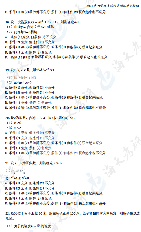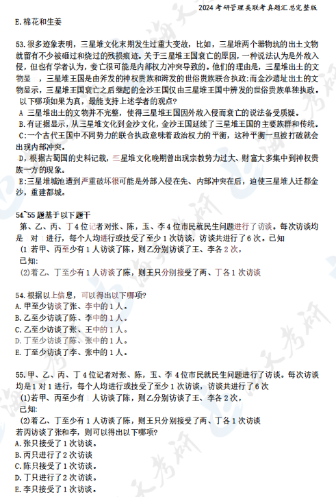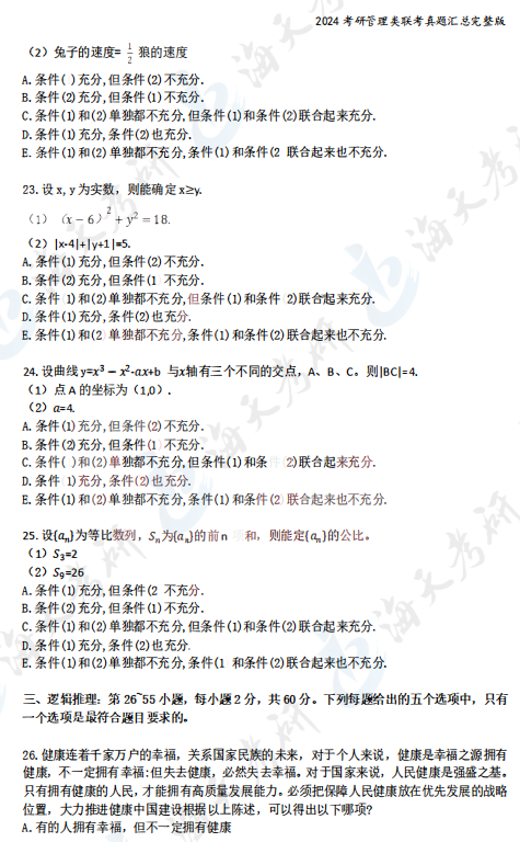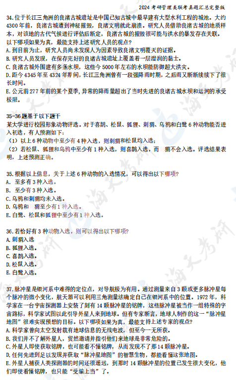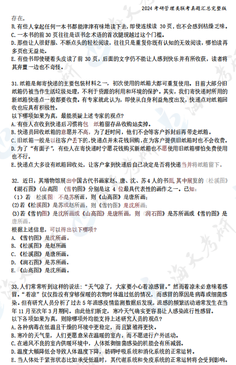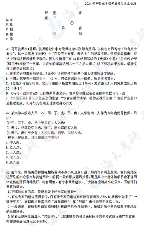 以上就是海天考研网为各位考生整理的2024考研管理类综合能力真题汇总完整版,持续为考研学子更新考研政治、数学、英语、396考研真题及答案解析等,各位考生可以根据自身需要关注收藏,及时查看完整版2024考研真题及答案解析。